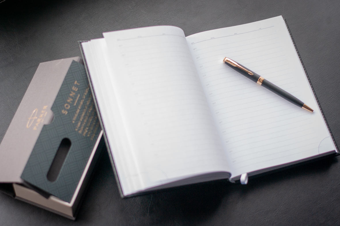 Подарочный набор VIP Ежедневник и ручка Parker Sonnet Matte Black GT от официального дилера Parker в Оренбурге. Вы можете дополнительно заказать гравировку, которая подчеркнет Вашу оригинальность и придаст памятность статусному подарку. Все ручки Паркер поставляются в фирменном футляре.