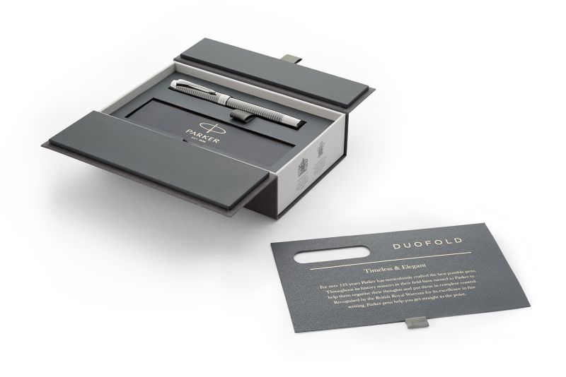 Ручка роллер Parker Duofold Prestige Ruthenium Chiselled CT от официального дилера Parker в Оренбурге. Вы можете дополнительно заказать гравировку, которая подчеркнет Вашу оригинальность и придаст памятность статусному подарку. Все ручки Паркер поставляются в фирменном футляре.