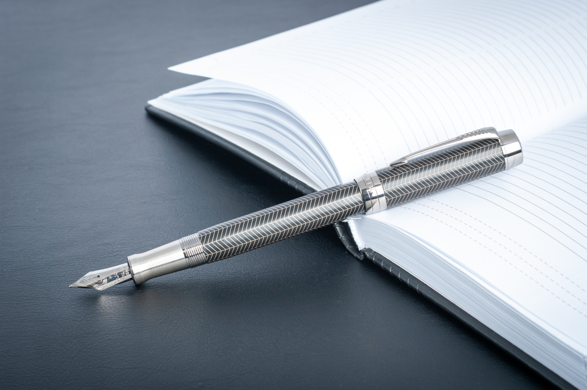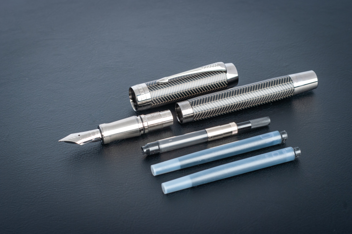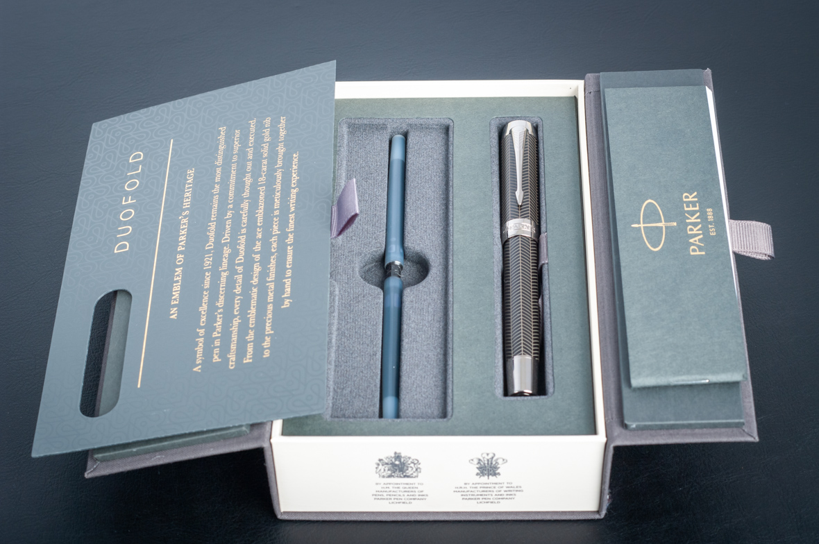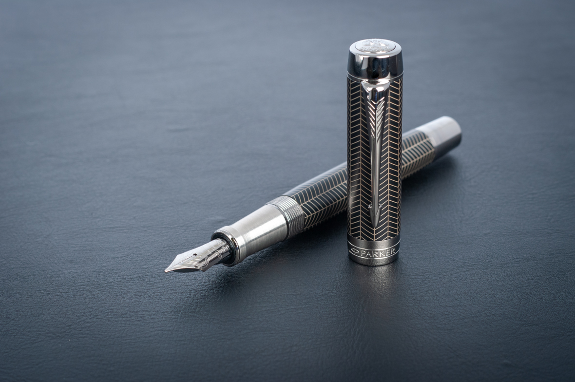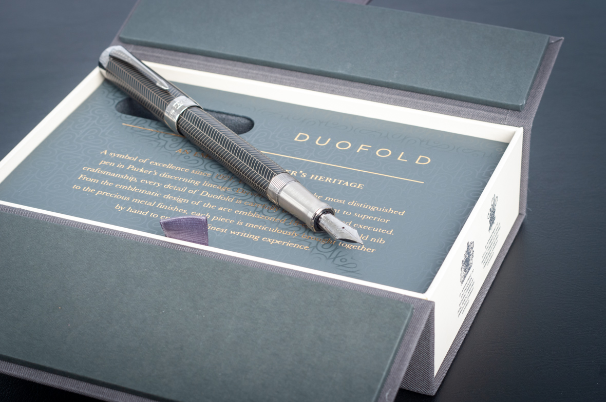 Перьевая ручка Parker Duofold Prestige Centennial Black Chevron CT от официального дилера Parker в Оренбурге. Вы можете дополнительно заказать гравировку, которая подчеркнет Вашу оригинальность и придаст памятность статусному подарку. Все ручки Паркер поставляются в фирменном футляре.